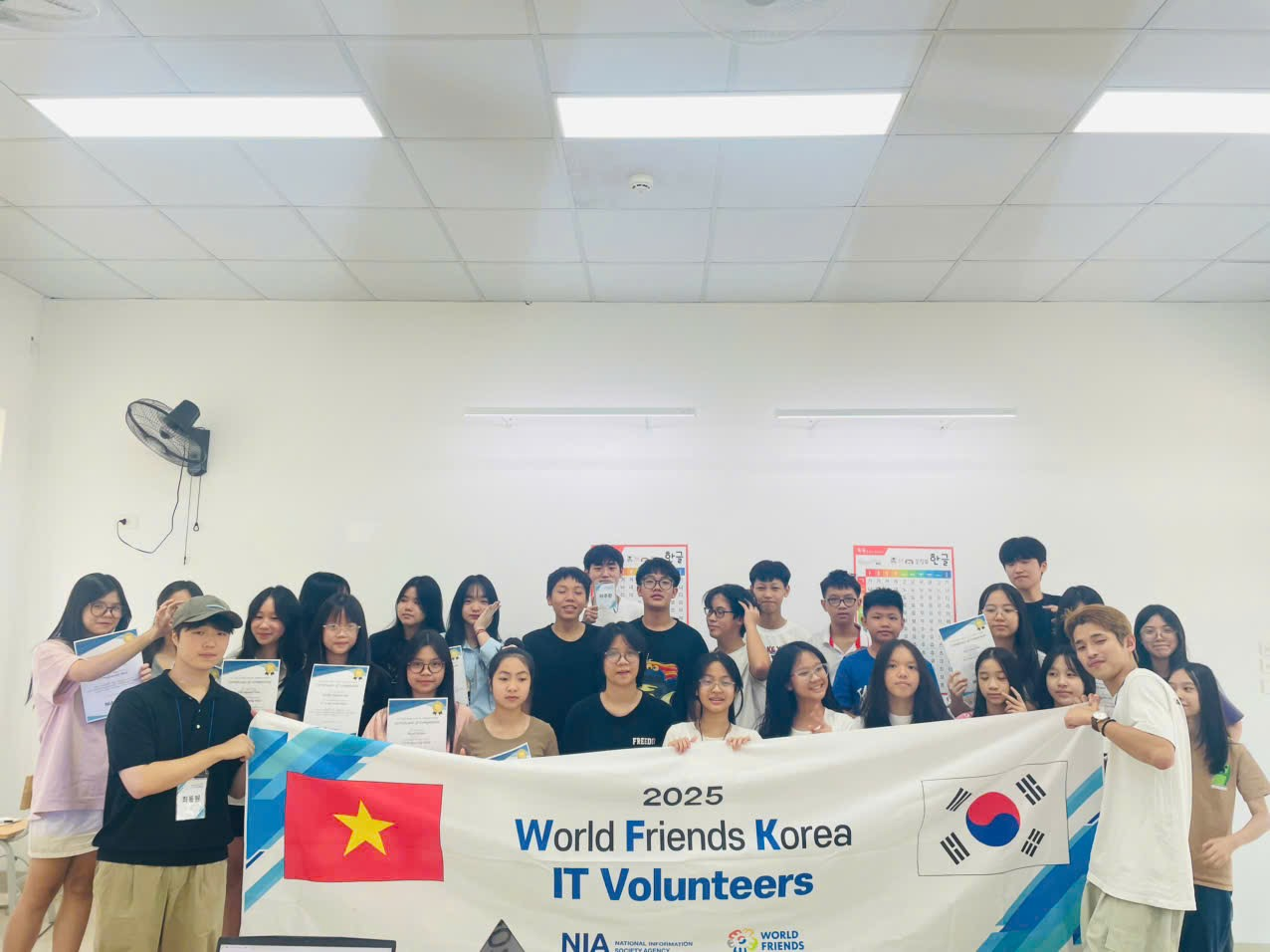 Trong gần một tháng (21/7 – 09/8/2025), các bạn tình nguyện viên nhóm S.T.E.P đã mang đến chương trình “Tạo trang web AI của riêng bạn & Khám phá văn hóa Hàn Quốc!”. Học sinh được tiếp cận kiến thức về lập trình web (HTML, Firebase), công cụ AI, học tiếng Hàn cơ bản, đồng thời trải nghiệm K-POP, Taekwondo, trò chơi dân gian Hàn Quốc. Phương pháp học tập kết hợp thuyết trình, làm dự án nhóm, thực hành và chơi trò chơi giúp các giờ học luôn sôi động và hứng khởi. Dù cơ sở vật chất của trường vẫn đang trong quá trình xây dựng, còn bộn bề bụi và tiếng máy, nhưng những giờ học tiếng Hàn, những buổi trải nghiệm văn hóa, cùng kiến thức công nghệ thông tin hiện đại vẫn tràn ngập tiếng cười và tinh thần sẻ chia. Chính sự nhiệt huyết và tình cảm nồng ấm của các bạn sinh viên Hàn Quốc đã giúp khoảng cách địa lý được xóa nhòa, để lại trong mỗi học sinh nhiều ấn tượng khó quên.
