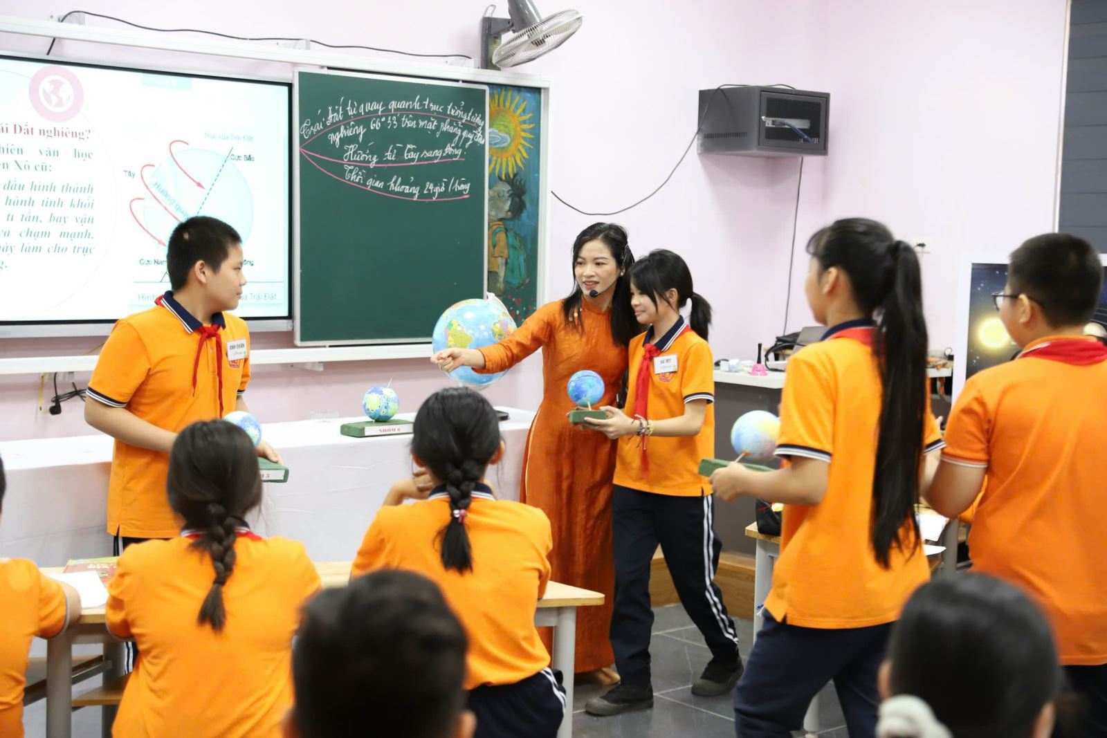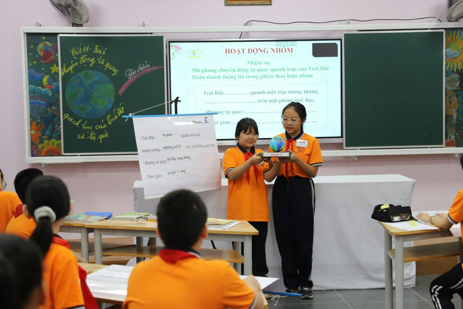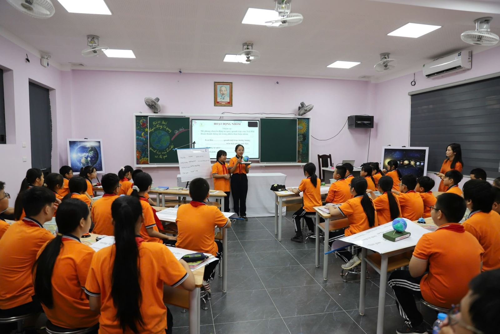 Hướng tới mục tiêu đánh giá năng lực học sinh thông qua hệ thống bài tập giải quyết các tình huống thực tiễn trong phân môn Địa lí 6, cô giáo Đoàn Thị Thơm đã mang tới một tiết học Địa lí nhẹ nhàng và cuốn hút qua tiết 11 bài 6 “Chuyển động tự quay quanh trục của trái đất và hệ quả” (tiết 1). Tiết học được đánh giá cao bởi sự tự nhiên, gần gũi với thực tế, học sinh trải nghiệm và vận dụng bài học để tạo ra sản phẩm học tập ngay tại lớp. Từ sự dẫn dắt khéo léo của cô giáo, học sinh hào hứng ngay từ phút giây đầu tiên bởi màn khởi động bằng bài hát vui nhộn về sự chuyển động của mặt trời, tiếp đó là các hoạt động học tập “thử thách siêu trí tuệ”, hoạt động trải nghiệm, hoạt động mô phỏng … không chỉ giúp học sinh hiểu hơn bài học mà còn phát huy được năng lực của mỗi cá nhân. Hơn thế nhờ sự hợp tác tích cực của các con học sinh trường THCS Nguyễn Trãi qua các hoạt động tích hợp với môn Âm nhạc và Văn học khiến cho tiết học trở nên sôi nổi, hào hứng hơn.