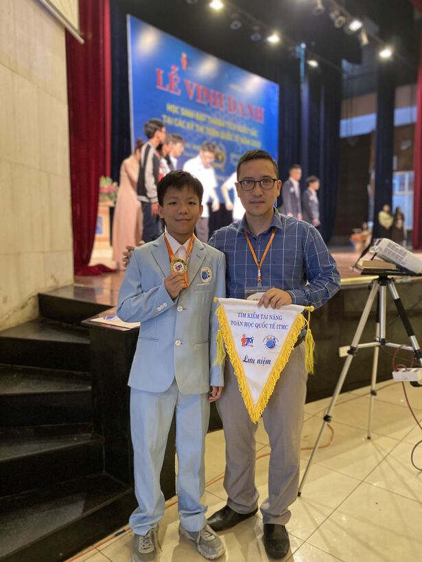 Chiều 2/4, tại trường THPT chuyên Hà Nội- Amsterdams Công ty Cổ phần Giáo dục Gmaths đã tổ chức Lễ vinh danh học sinh đạt thành tích xuất sắc các kỳ thi Toán Quốc tế năm 2023. Đến dự buổi lễ có các lãnh đạo Sở Giáo dục, lãnh đạo Phòng Giáo dục, Ban Giám hiệu các trường có học sinh đạt giải. Tại vòng Quốc gia ITMC 2023, học sinh Phạm Trí Anh lớp 7A0 trường THCS Thăng Long đã xuất sắc đạt được Huy chương Vàng. Và đây là huy chương thứ 11 của em đạt được trong các kỳ thi Toán Quốc tế kể từ khi là HS cấp THCS như: AIMO, IMEC, SEAMO, AIMO, IMC,TIMO, ITMC … Hy vọng em sẽ còn tiến xa hơn và luôn giữ được niềm đam mê với Toán Quốc tế. Đồng thời em hãy là người truyền cảm hứng cho các bạn học sinh để nhà trường ngày càng có nhiều tài năng Toán Quốc tế hơn.