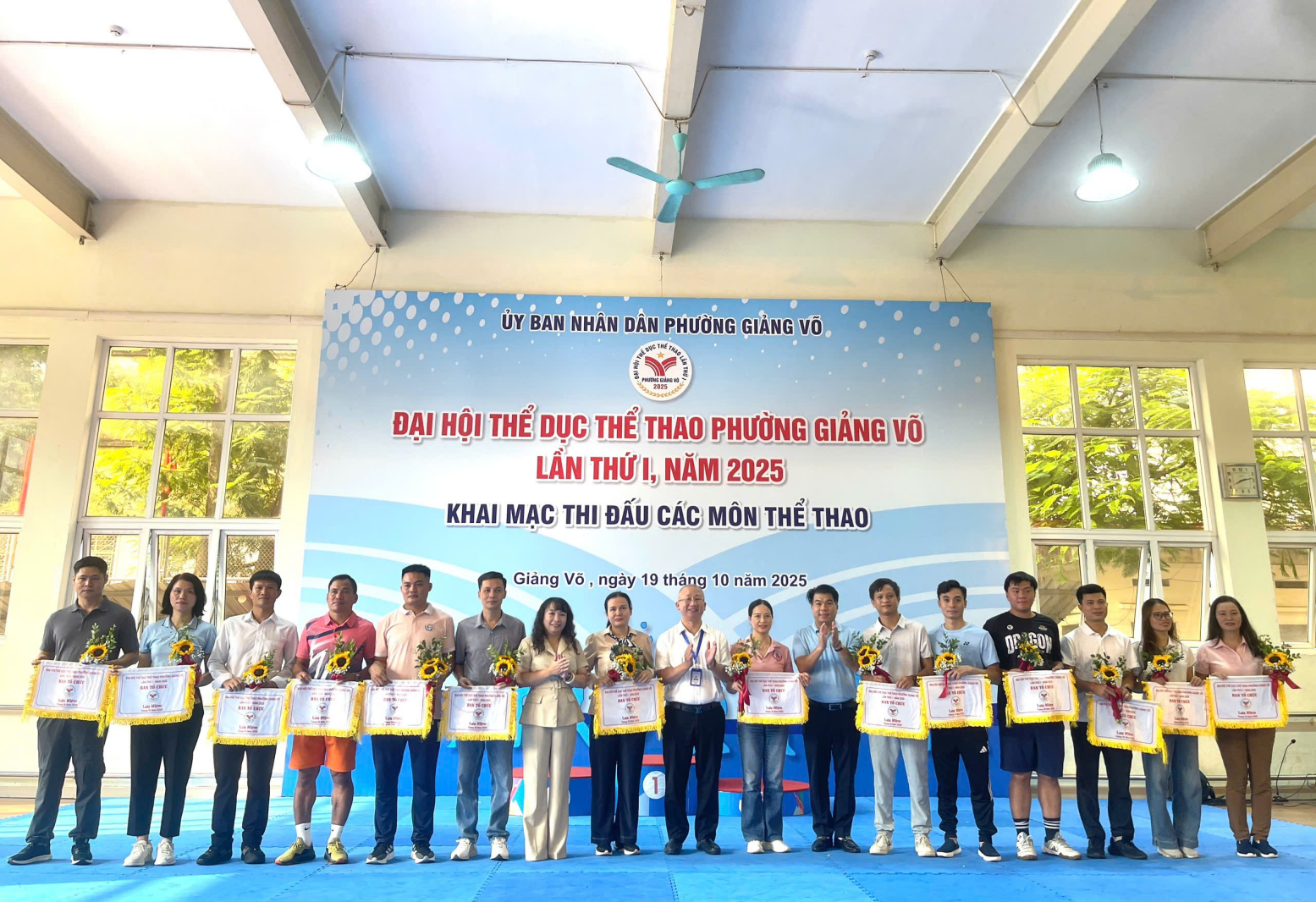 Thực hiện kế hoạch số 308/KH-UBND ngày 25/10/2024 của UBND Thành phố Hà Nội về việc tổ chức Đại hội Thể dục Thể thao Thủ đô lần thứ XI năm 2025; kế hoạch số 250/KH-UBND ngày 12/9/2025 của UBND Thành phố Hà Nội và kế hoạch tổ chức Đại hội Thể dục Thể thao phường Giảng Võ lần thứ I năm 2025, sáng ngày 19/10/2025, tại Trung tâm Văn hoá – Thể thao phường Giảng Võ đã long trọng diễn ra Lễ khai mạc Đại hội TDTT phường Giảng Võ.