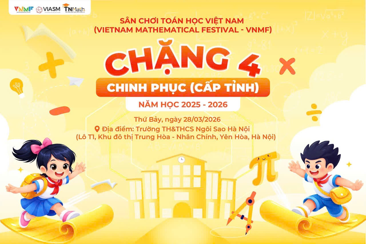 Ngày 28/3/2026 , tại Chặng 4 với chủ đề "Chinh phục" (cấp tỉnh, thành phố ) thuộc khuôn khổ Sân chơi Toán học Việt Nam (VNMF) năm học 2025 – 2026 do Viện nghiên cứu cao cấp về Toán thuộc Bộ Giáo dục và Đào tạo tổ chức, bốn gương mặt đại diện của trường THCS Thăng Long đã tham gia tranh tài với một tinh thần tự tin và bản lĩnh vững vàng. Mang theo niềm đam mê Toán học mãnh liệt cùng quyết tâm chinh phục những thử thách trí tuệ, các em đã xuất sắc khẳng định được năng lực của bản thân và mang về những thành tích rất đáng tự hào.